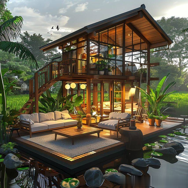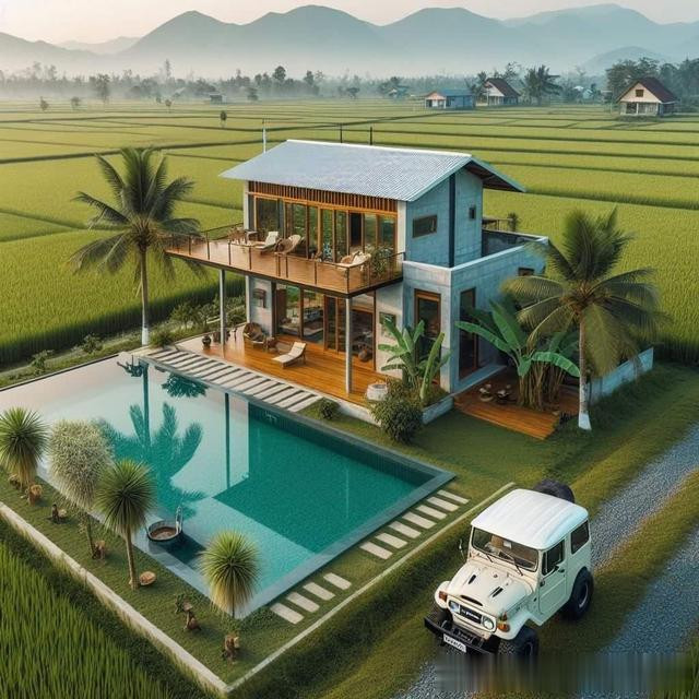 在这样的环境中,农村建筑与稻田完美融合,为人们提供了一个绝佳的休闲之地。