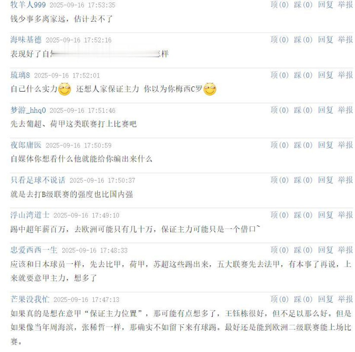 ——踢中超年薪百万,去欧洲可能只有几十万,保证主力可能只是一个借口
