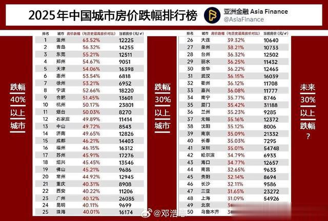 榜首的保利的业绩也只有1400亿,第十位的滨江只有500多亿,也就是说全年业绩1000亿基本就能进入前十了。而上半年100亿不到的房企居然有四家进入前50。这说明了什么呢?2021年千亿房企就有40多家,当时达到千亿才能勉强进入前50。总体上看,中国房地产业并没有见底,更谈不上企稳,2025年虽然有部分一线和强二线楼市复苏,但全国楼市的整体仍然是下行的。另外,从2025年上半年A股市场表现看,房地产股是所有行业中下跌幅度第三的行业,仅次于煤炭和食品饮料。